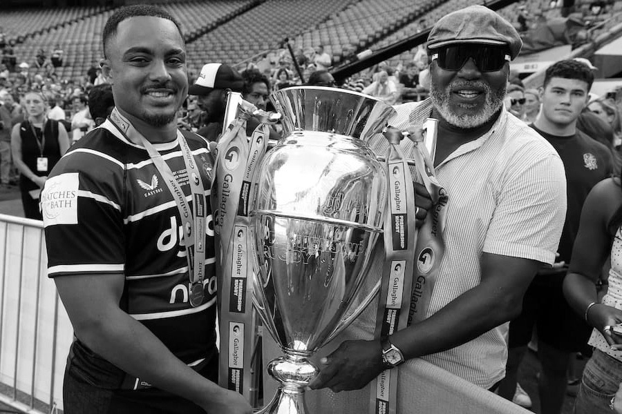 Max Ojomoh con su padre Steve, que ganó 12 partidos para Inglaterra en la década de 1990